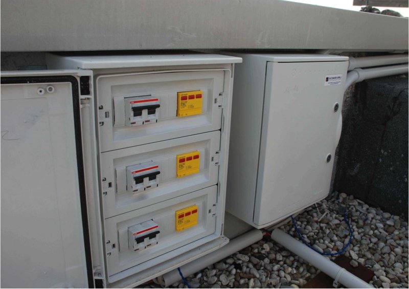 Completano la realizzazione del sistema di produzione, le reti di distribuzione dell’acqua calda, dai collettori agli accumuli e la distribuzione elettrica del generatore fotovoltaico con i relativi sistemi di protezione e sezionamento di quest’impianto.