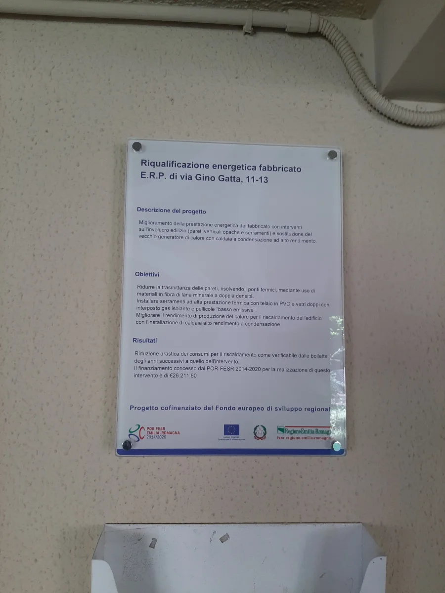 L’intervento ha avuto l’obiettivo di migliorare la prestazione energetica del fabbricato sito in via Gino Gatta 11- 13 in Ravenna composto da n. 12 unità immobiliari adibite ad alloggi di edilizia residenziale pubblica di proprietà del comune di Ravenna, classificate E.1. (1) ai sensi del D.P.R. 412/93.